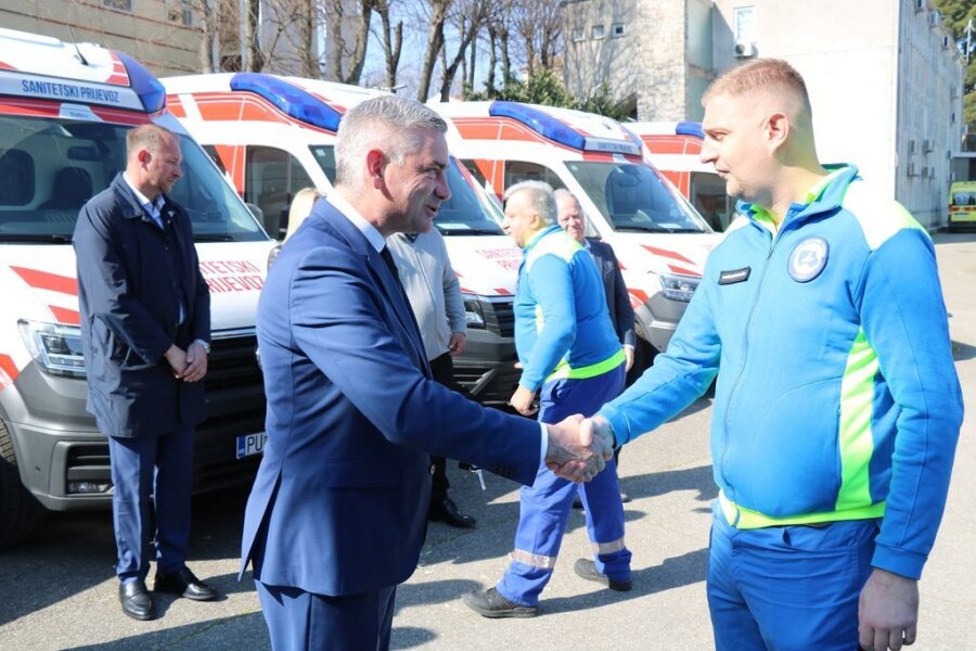 Istarska županija je nabavila novih pet vozila sanitetskog prijevoza, vrijednih 550 tisuća eura za potrebe Nastavnog zavoda za hitnu medicinu Istarske županije, namijenjena Ispostavama u Puli, Labinu, Umagu, Buzetu i Rovinju, čime nastavlja kontinuiranu obnovu voznog parka ove ustanove, čiji je i osnivač. Svečana primopredaja vozila održana je danas u Puli, a prisustvovali su joj istarski župan Boris Miletić, gradonačelnik Labina Valter Glavičić, gradonačelnik Buzeta Damir Kajin, zamjenica gradonačelnika Pule Ivona Močenić, zamjenik gradonačelnika Umaga Mauro Jurman, zamjenik gradonačelnika Rovinja David Modrušan, pročelnica Upravnog odjela za zdravstvo i socijalnu skrb Gordana Antić i ravnateljica Nastavnog zavoda za hitnu medicinu Istarske županije Tatjana Čemerikić.