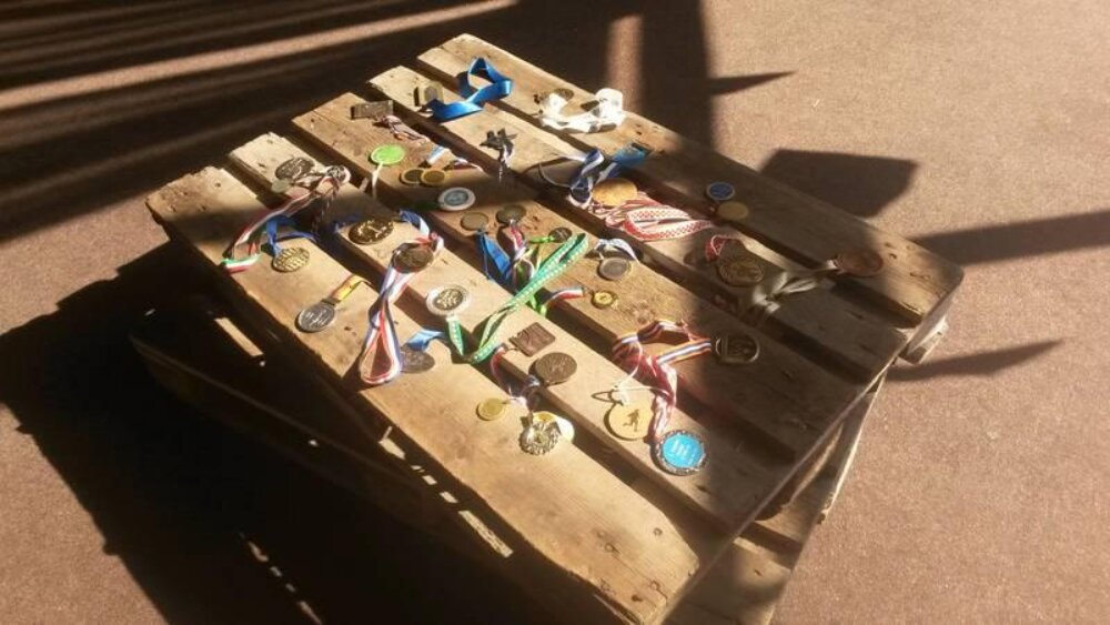 Mogle su se tako vidjeti majice, tenisice, medalje, i fotografije Trickera u akciji.