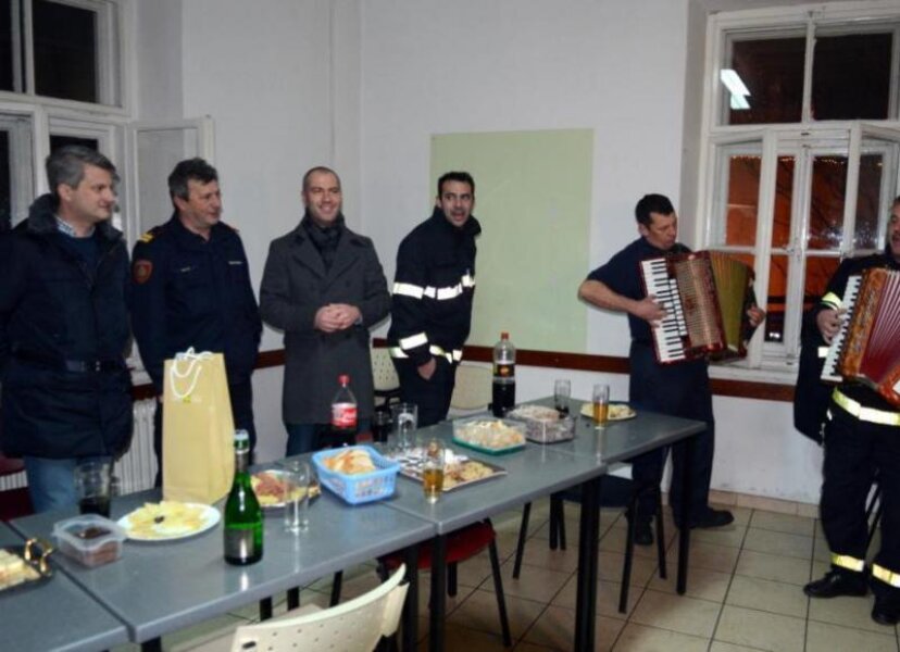 Već su me upozorili da će kod vas biti najveselije. Samo vi svirite, nemojte stati, rekao je predsjednik Gradskog vijeća Pule Robert Cvek za sinoćnjeg tradicionalnog posjeta pulskoj Javnoj vatrogasnoj postrojbi, u društvu pročelnika Ureda grada Aleksandra Matića. Od 12 dežurnih vatrogasaca čak su trojica svirala harmoniku, oko prepunog blagdanskog stola. Nisu cijelu noć feštali - večer je počela gašenjem požara na Vidikovcu, zapalio se veliki pin kod napuštenog Merkantovog skladišta. Na intervenciji su bila dva vozila i pet vatrogasaca. „Stara nam je godina bila dobra, bez velikih ekstrema, u prosjeku smo imali dvije intervencije dnevno“, kaže nam Nenad Ilisić, zapovjednik smjene koja se razdužila u sedam ujutro.