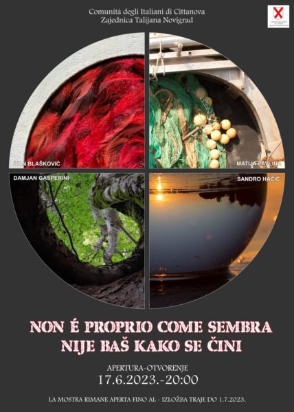 U subotu, 17. lipnja u 20 sati otvorit će se izložba fotografija i radova pod nazivom "Non è proprio come sembra / Nije baš kako se čini" u prostorima Zajednice Talijana Novigrad.