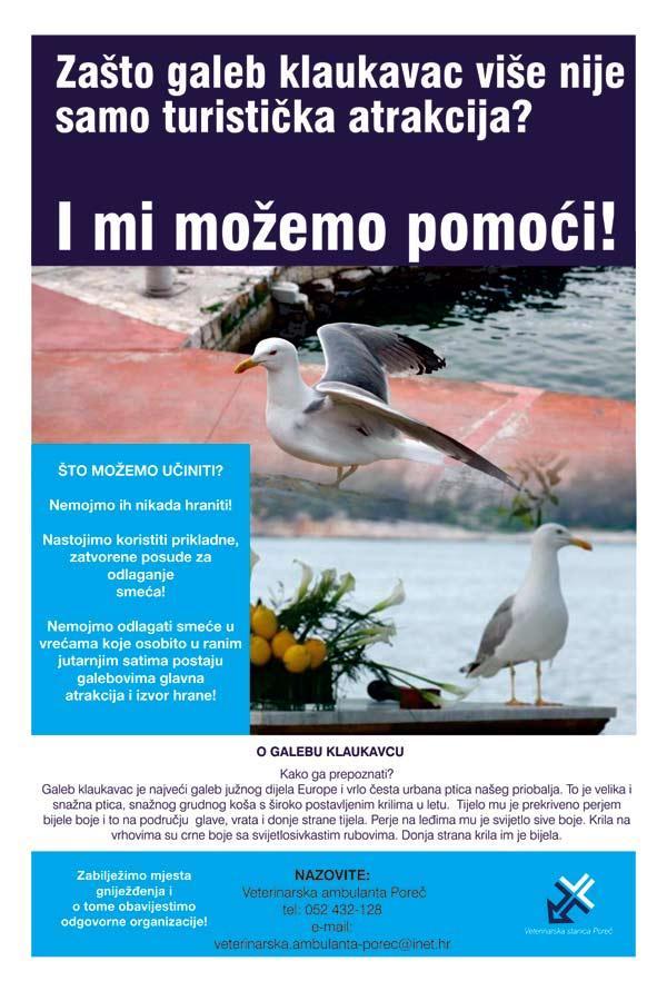 Naime, problem prekomjerne populacije galebova u urbanim sredinama sredozemnih zemalja je značajan i nije ga više moguće zanemariti. Jednako ga nije moguće zanemariti u turističkim gradovima Istre. Galeb je od divlje životinje, karakteristične za naše podneblje, višestruko povećao svoju populaciju, poprimio karakteristike „urbane životinje“, mijenja obilježja ponašanja i gniježđenja. Umjesto na svojim primarnim staništima (otoci i hridi) gnijezdi se na krovovima kuća i drugih zgrada (prvenstveno hotela), postaje agresivan u potrazi za hranom te ne preže od fizičkih napada na ljude na ulici, u ugostiteljskim objektima, na terasama i bazenima hotela, „urbanog“ galeba znanstvenici opisuju kao rezervoar za čovjeka opasnih virusnih i bakterijskih bolesti. Slijedom navedenog, na inicijativu Grada Poreča i porečkih vijećnika te temeljem višegodišnjih iskustava Grada Poreča u realizaciji ekološko zdravstvenih projekta (npr. kontrola kontaminiranosti javnih površina, naročito dječjih pješčanika i dr.) stručni tim Zdravog grada Poreč inicirao je koordinaciju prvog pilot projekta te vrste u Hrvatskoj u suradnji s Veterinarskim fakultetom Poreč, Veterinarskom ambulantom poreč te hrvatskim ornitolozima. Uspješnu realizaciju projekta, već u prvoj godini djelovanja, osigurali su dioničari projekta na teritorijalnom području realizacije istog koji sudjeluju u njegovu praćenju i realizaciji te u njegovu financiranju, a to su: Općine i gradovi (Vrsar, Funtana, Tar-Vabriga, Poreč), Turističke zajednice (Poreč, Vrsar, Funtana, Tar –Vabriga), TZ Istarske županije i velika turistička poduzeća Riviera, Plava Laguna i Maistra. Dioničari projekta povezali su se u istom cilju i interesu, a to je suzbijanje populacije galeba klaukavca , osiguravanje građanima i posjetiteljima ovog područja kontrolu zdravstvenih rizika i neugodnih fizičkih napada galebova koji mogu biti opasni jer se radi o velikim i vrlo snažnim pticama.
