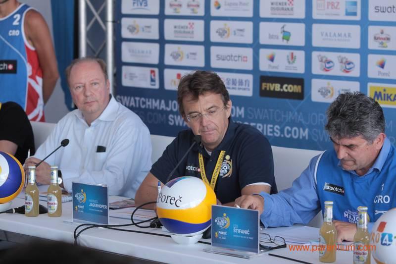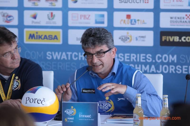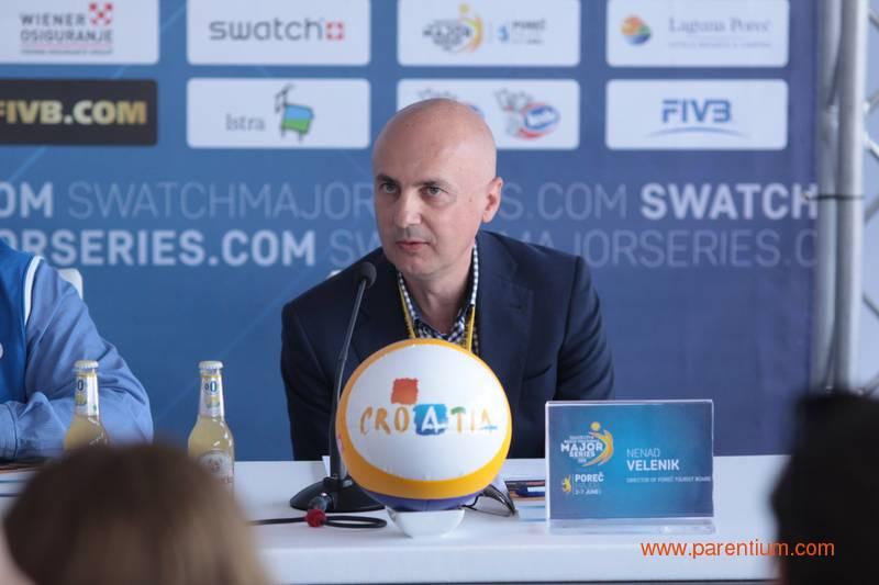 Jučer je započeo šestodnevni spektakl – prva etapa Swatch Beach Volleyball serije koja je u Poreč dovela vrhunska imena svjetske odbojke na pijesku. Na vrlo posjećenoj konferenciji za medije događaj su predstavili izvršni direktor Beach Majors kompanije i čelni čovjek projekta Hannes Jagerhofer, predsjednik Hrvatske odbojkaške udruge Zdeslav Barač, čelni čovjek Swatch sporta Patric Schmidlin, gradonačelnik Poreča Edi Štifanić i direktor ureda Turističke zajednice grada Poreča Nenad Velenik.