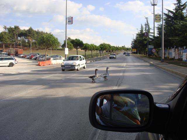 Iako su pješački prijelazi na raskrsnici ispred sportske dvorane na Žatiki prilično opasni, guske na fotografijama koje nam je poslao čitatelj dokaz su da za siguran prijelaz preko ceste nije potrebna nikakava posebna naobrazba.