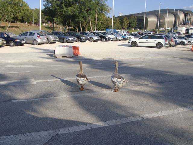 (Guske zapravo nisu krenule ni na kakav sportski događaj, nego na svoj "položaj" na neuređenoj livadi u okolici dvorane).