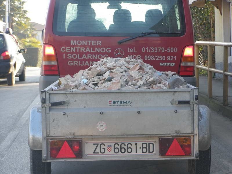 Na porečkim prometnicama svakodnevno možemo naići na brojne primjere nezakonita odnosno protupropisna ponašanja, koje se rijetko ili nikad ne sankcionira. Jedan od takvih primjera su i brojni građevinski poduzetnici koji svoj posao obavljaju bez posjedovanja adekvatne opreme i vozila. Tako smo jučer u blizini našeg sjedišta primijetili i fotografirali ovog građevinskog neimara koji je za kombi-vozilo prikopčao automobilsku prikolicu, a na tu istu prikolicu natovario građevinskog otpada do ”priko šponde”.