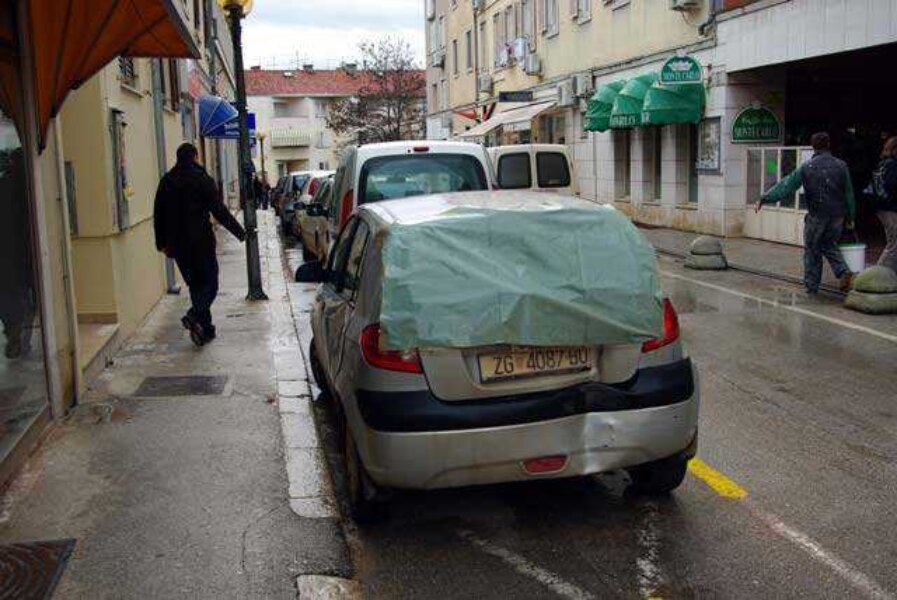 Vrlo oštećeni Hyundai već se dulje vrijeme može vidjeti u Kandlerovoj ulici, a čitatelji koji su nas pozvali da ga fotografiramo kažu da nije nepokretan, nego da "uredno vozi". Sa svih je strana izubijan i "ranjen", nedostaje mu stražnje vjetrobransko staklo koje je zamijenjeno plastičnom ceradom zalijepljenom ljepljivom trakom.