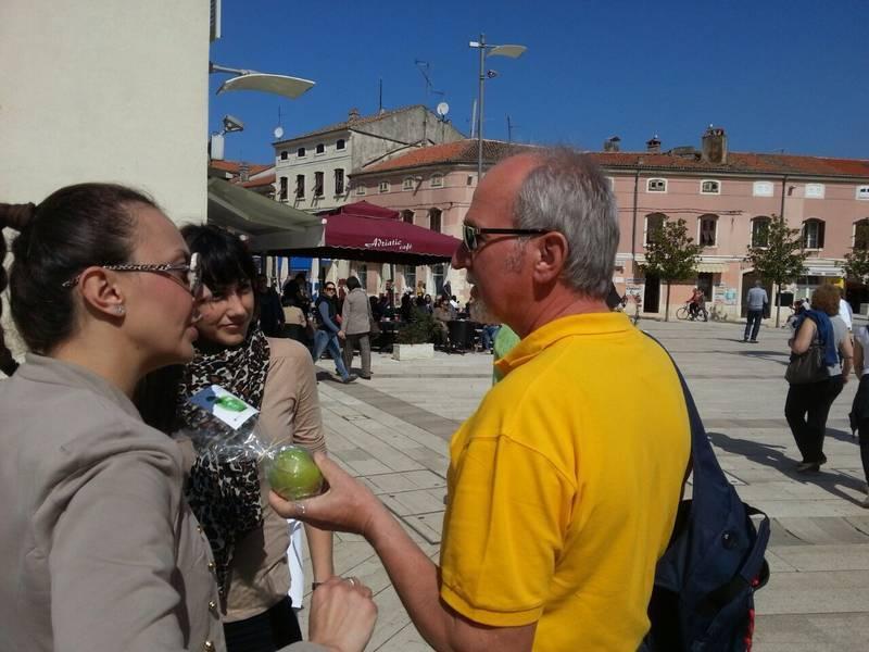 Klub mladih IDS-a Poreč je građanima jučer na glavnom gradskom trgu povodom Svjetskog dana zdravlja građa dijelio prigodne jabuke.
