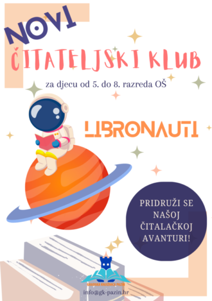 Stariji osnovnoškolci, od 5. do 8. razreda, mogu se pridružiti klubu "Libronauti". Uz stručno vodstvo Donatelle Gasparini, članovi će istraživati različite književne svjetove i dijeliti mišljenja o pročitanim djelima. Početak susreta predviđen je za 16 sati.