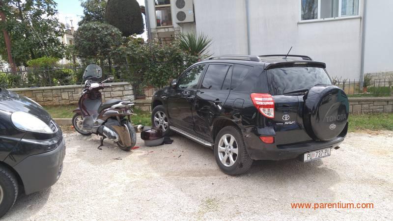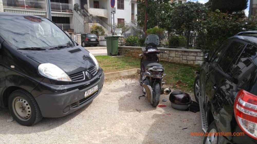 Bizarna se prometna nezgoda dogodila danas u rano nedjeljno poslijepodne kad je stanare ulice Stipe Rajka iznenadio tresak sa parkirališta. Pohitavši na ulicu, iznenađeni su shvatili kako je kombi vozilo porečkog komunalnog poduzeća "Usluga" oštetilo jedan skuter i dva osobna automobila.