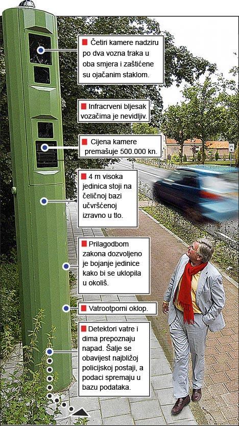 Sličnih primjera bilo je i na našim cestama. Kamere za snimanje prebrzih vozača nisu dugo trajale na najfrekventnijim zagrebačkim prometnicama. Stupanj njihove zaštite bio je nevjerojatno nizak, pa bi se vandali razbijanjem slabašnog zaštitnog prozorčića probili do skupocjene kamere i odnijeli je sa sobom.