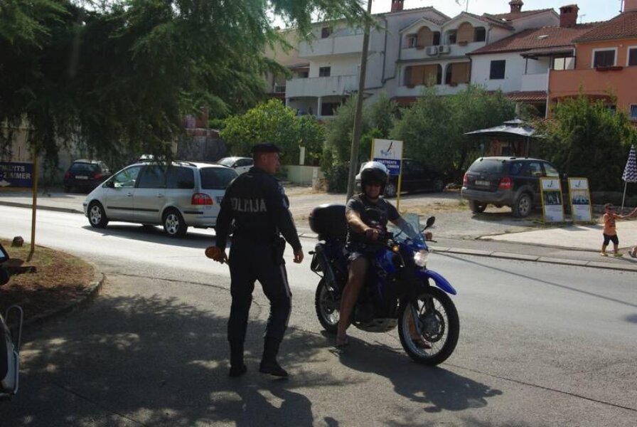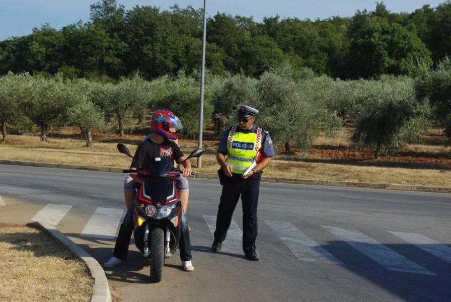 Najviše je posla za policajce bilo u Zelenoj laguni pred parkiralištem Byblosa, gdje su u kratko vrijeme uhvaćena dva prekršitelja. Mladić i djevojka na skuteru zapremine 50ccm vozili su se sa propisanim zaštitnim kacigama, ali je mladi vozač zaboravio jednu vrlo važnu stvar, a to je polaganje vozačkog ispita. Zbog toga je skuter morao ostaviti na parkiralištu dok po njega ne dođe netko sa vozačkom dozvolom, a sa djevojkom put nastaviti pješice.