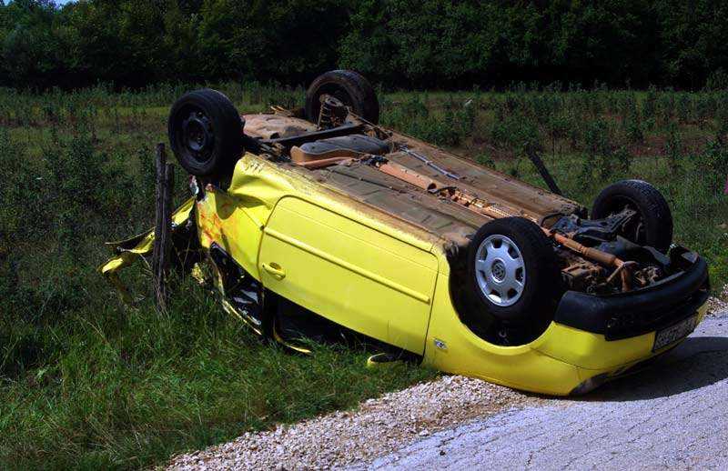 Nakon udara u kamion, "lupo" se zarotirao i prevrnuo na krov