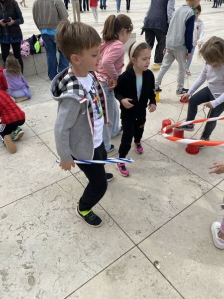 Djeca su sudjelovala u raznim igrama poput preskakanja špage, potezanja konopa, guranja obruča, hula-hopa, igranja zvrkova i križića-kružića.