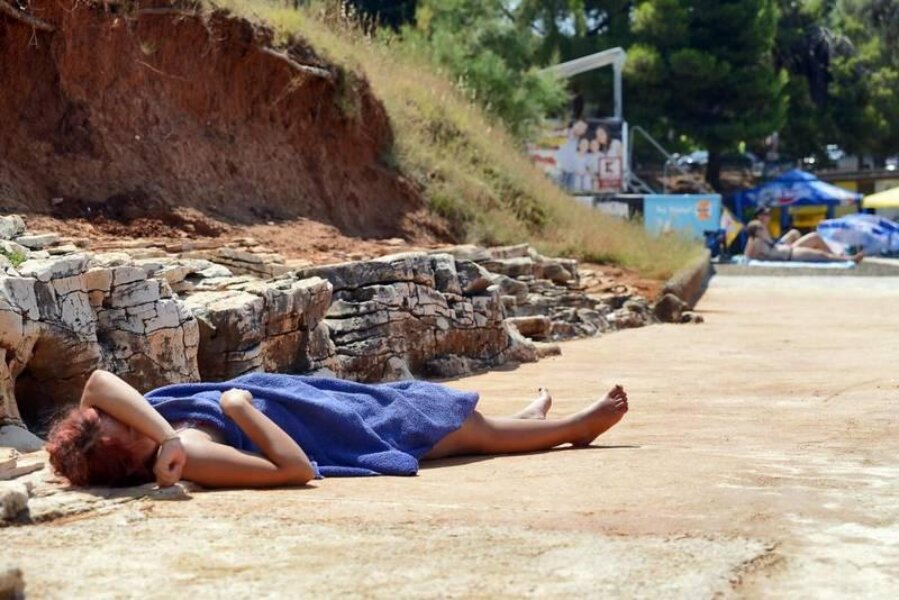 No visoke temperature ali i sva silna upozorenja liječnika o izbjegavanju sunca između 10 i 17 sati, nisu omeli brojne kupače na plažama. Već u podne na pulskim kupalištima jučer smo zatekli mahom turiste koji su se nonšalantno sunčali na suncu.