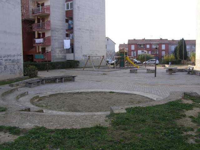 U Mate Baloti nalazi se igralište sa pješčanikom. To je igralište naš portal godinama branio od invazije neodgojenih automobilista, koji su svoje kante ostavljali po njemu, te smo na kraju i pobijedili: Grad je naložio postavljanje betonskih gljiva, pa se na igralištu automobile više ne može pronaći.