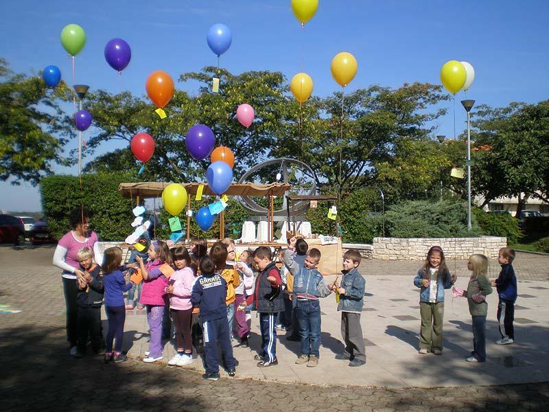 Dodatnu radost izazvali su baloni na kojima su djeca postavljala svoje poruke i crteže, a potom ih puštala da lete i „putuju na jug kao rode!“ Poruke poput “Pomognite jedni drugima“, „Volite se“, „Pustite nas da još malo spavamo“ odletjele su nošene vjetrom i izazvale kod djece veliko uzbuđenje.