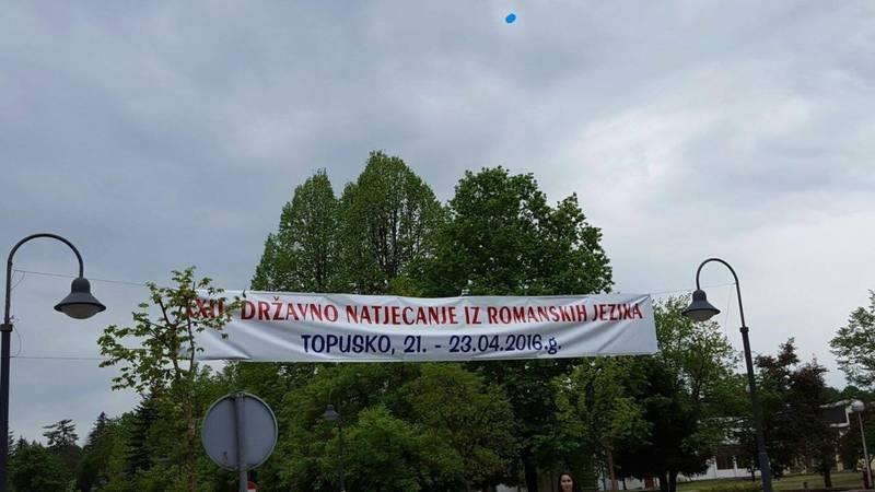 Prošloga tjedna, od 22. do 23. travnja 2016. godine, u Topuskom je održano XXII. Državno natjecanje iz romanskih jezika (talijanskog, španjolskog i francuskog), na kojem je u pratnji mentorice Danijele Delmoro sudjelovala i učenica četvrtog razreda jezične gimnazije Marina Žužić.