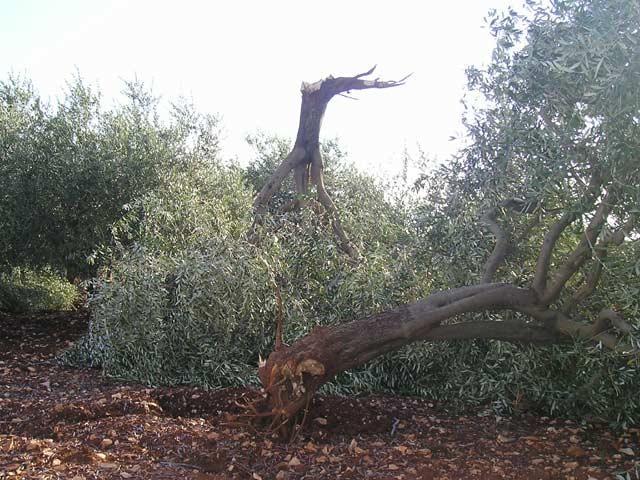 Četrdesetak od ukupno osamdeset maslina iščupano je iz zemlje i porazbacano, a nastradao je i obližnji vinograd kod Dvori blizu Labinci, u kojem su počupani čak i stupovi.