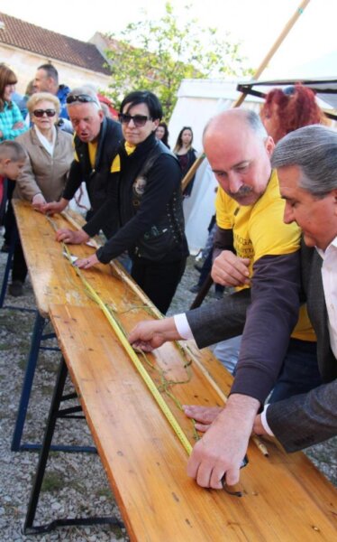 - Bila je i veća, ali je komisija odrezala dio, kažu da ne valja. Ubrali smo ih još nekoliko, ali su manje – govori vedri 71-godišnji Feručo, stalni sudionik ove manifestacije, gotovo uvijek nagrađivan ili za najveću ili za najteži i najljepši mac, a prije nekoliko godina pobijedio je sa šparogom od čak 418 cm. (Luka JELAVIĆ)