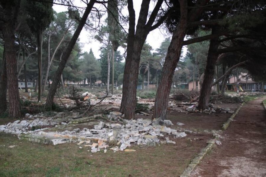 Parcela kampa će od javne površine biti odvojena zidićem, a manji dio starog restorana je srušen, što potvrđuje glasine o tome kako je bivši vlasnik izgradnjom bio zašao u pomorsko dobro.