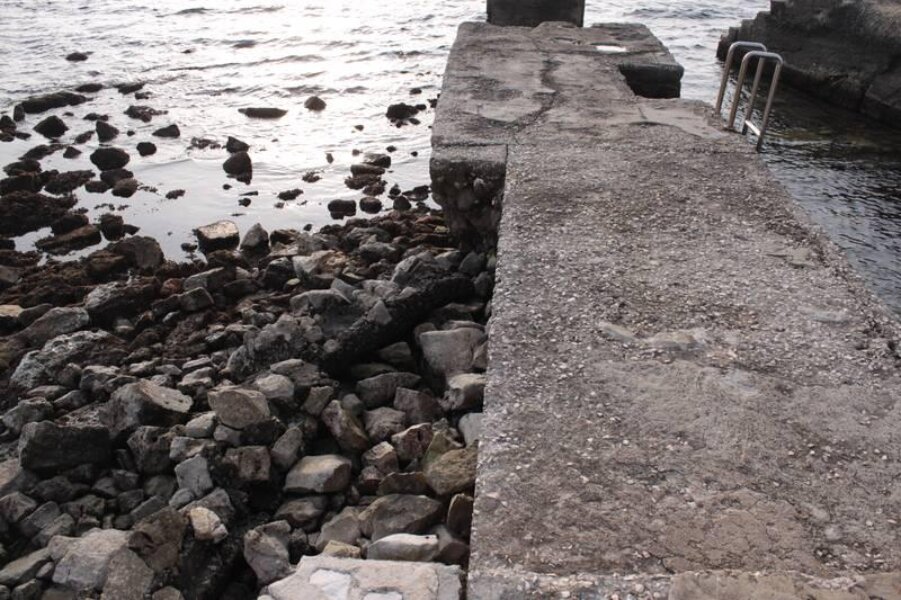 Bilo bi lijepo kad bi se država odnosno županija prema obalnom pojasu u našem gradu počele odnositi kao prema javnome dobru, a ne kao prema ničijoj imovini: na spomenutoj je lokaciji već nekoliko godina urušen potporni zid uz more, a molo na pomorskom dobru je u katastrofalnom stanju te sve skupa predstavlja veliku antireklamu turizmu. Povremeno ga popravljaju privatne osobe (koje to po zakonu i ne bi smjele činiti), a nitko osim njih ne čisti niti naplavine. Počesto tu, naime, završi kakvo morem doneseno stablo.