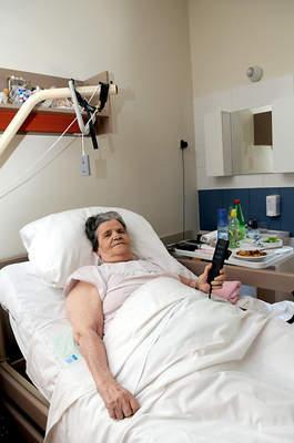 Teti Mariji, koja s još jednom gospođom boravi u sobi na istom odjelu, dani teku mnogo sporije. Godinama je nepokretna, doslovno prikovana za krevet jer zbog bolesti kukova ne može ni u kolica, no vrlo je živog duha i zanimljiva sugovornica. Pokazuje nam daljinski upravljač modernog kreveta, na kojem može dizati i spuštati uzglavlje, podnožje ili cijeli krevet, ovisno o tome što joj treba. Na ormariću je mali radio i – mobitel na punjaču. »Zovete mobitelom?«, pitamo je.