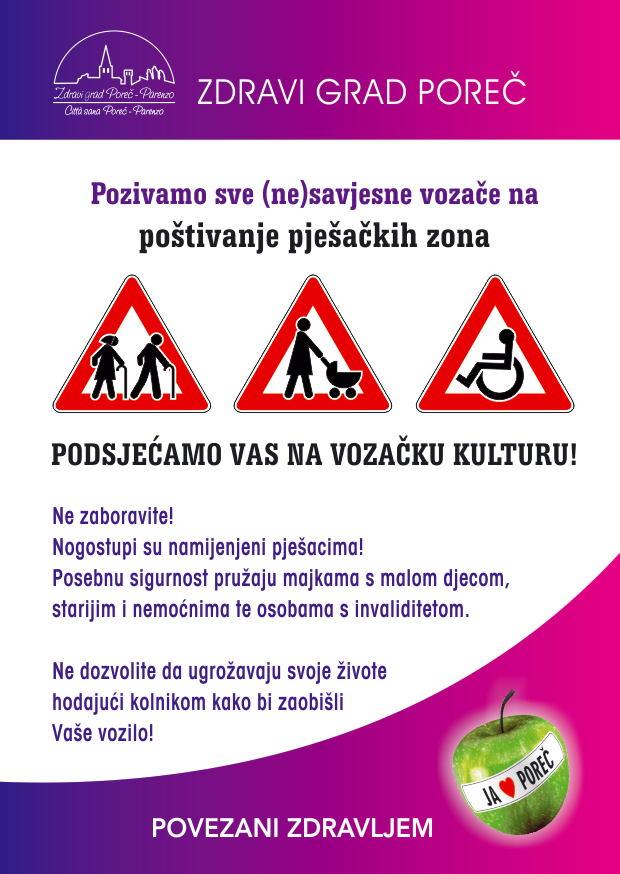 I na kraju, postoji jedna pisana oznaka u prometu koju je gotovo svatko nekada ili negdje zamijetio uz parkirna mjesta za osobe s invaliditetom koja glasi: „Ako ste uzeli moje mjesto da li želite uzeti i moj invaliditet?“ Budemo li je imali na umu prilikom svake vožnje gradom, prilikom porečkih ljetnih gužvi, pa i onda kad jako žurimo, sigurno nećemo oduzeti parkirno mjesto označeno za osobe s invaliditetom!
