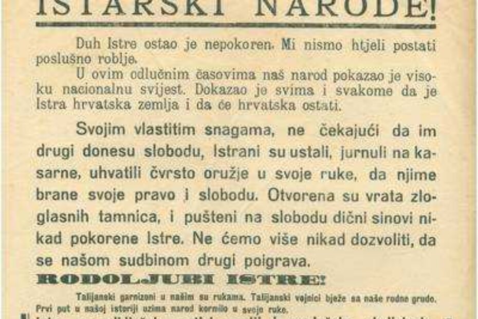 Na današnji dan 1943. godine objavljen politički proglas "istarskom narodu"