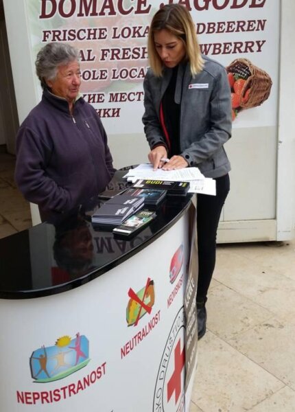 danas su na gradskoj tržnici u Poreču anketirali građanstvo i dijelili informativni materijal povodom 18. listopada, Međunarodnog dana borbe protiv trgovanja ljudima.