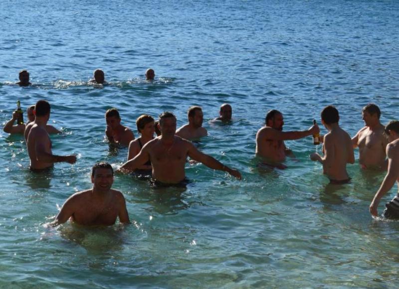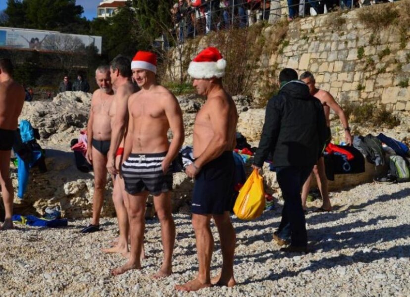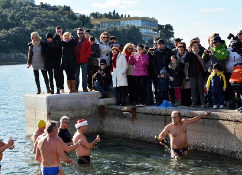 Labin nema novogodišnji doček, ali ima novogodišnje kupanje uz šampanjac. U Rapcu, na plaži kraj svjetionika, prvi dan nove 2015. godine, tridesetak smjelih kupača, ušlo je u more nazdravivši pjenušcem, kako to već 12-godišnja tradicija i nalaže.