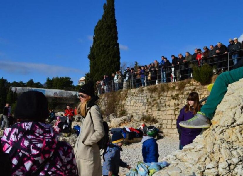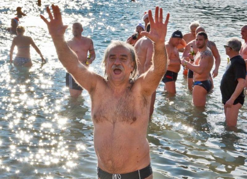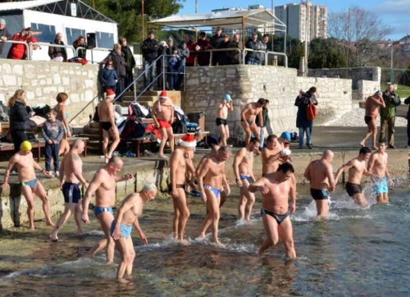 Gotovo pedeset Puljana, svake godine sve više njih, okupilo se jučeru podne na Mornaru kako bi prvih 12 sati nove godine proslavili, kao i obično, skokom u more i plivanjem! Uz zvuke "vruće" glazbe i bodrenje brojnih okupljenih članova obitelji, prijatelja i znatiželjnika kupači su se nakon grupnog fotografiranja za uspomenu uz odbrojavanje uputili prema moru, a najmlađa kupačica, sedmogodišnja Lana Buić bila je toliko nestrpljiva te u mora zakoračila i hrabro zaplivala prva. Nakon dolaska na obalu, dok ju je mama užurbano brisala, upitali smo je li joj more bilo hladno, a ona spremno odgovorila "Ne"!