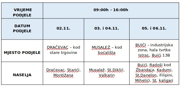 Od 2. studenog nastavlja se podjela spremnika po organiziranim punktovima za naselja Grada Poreča te u MO Fuškulin, Varvari i Žbandaj.