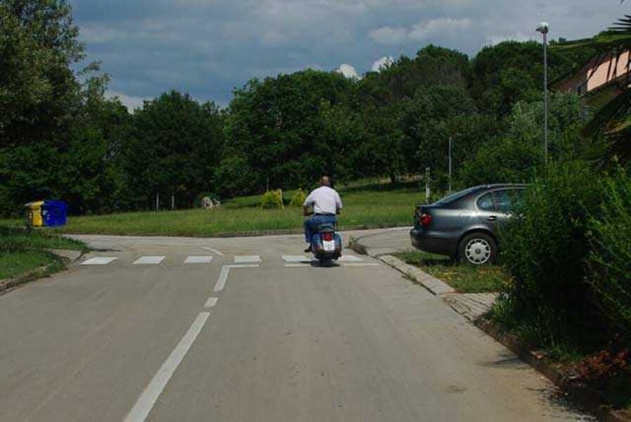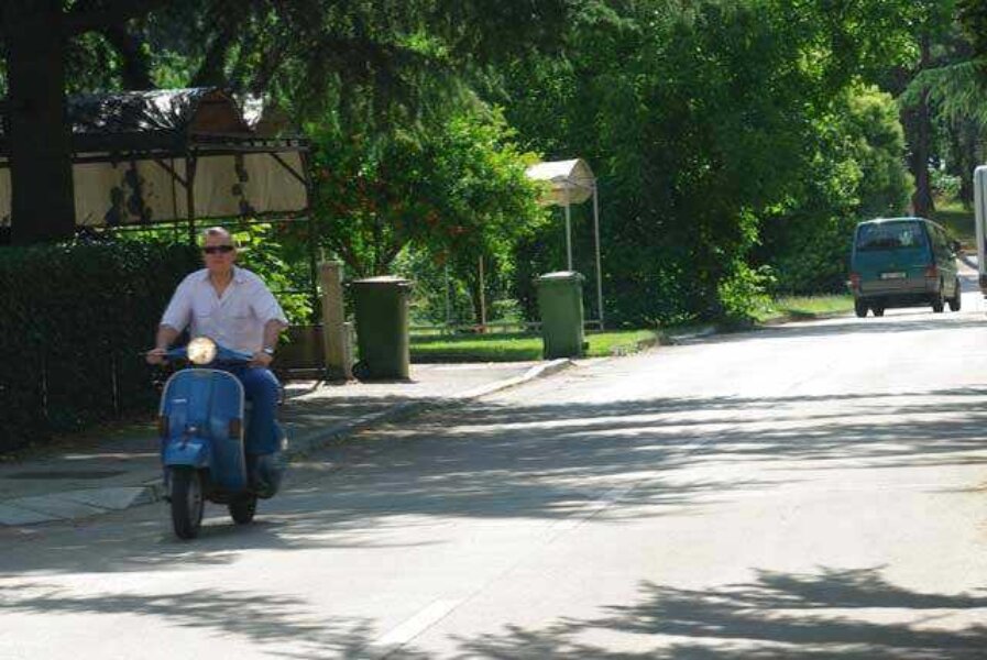 Iako bi se od njega očekivao pozitivni primjer, visokopozicionirani sredovječni djelatnik jedne velike porečke turističke tvrtke svoju Vespu vozi na način kojim čini upravo suprotno.