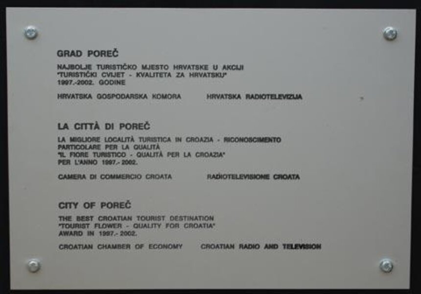 Osvajanja brojnih Turističkih cvjetova rezultirala su danas postavljanjem nove skulpture na rubu porečkog Parka Olge Ban. Radnici porečkog komunalnog poduzeća "Usluga" smjestili su na šetnicu dvije tone teško djelo sa metalnom pločicom posvete na kojoj stoji da je Poreč u akcijama Hrvatske radiotelevizije i Hrvatske gospodarske komore "Turistički cvijet - kvaliteta za Hrvatsku" od 1997. do 2002. godine osvajao tu prestižnu nagradu.
