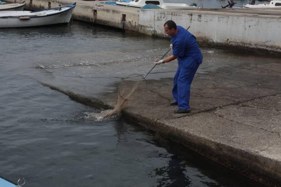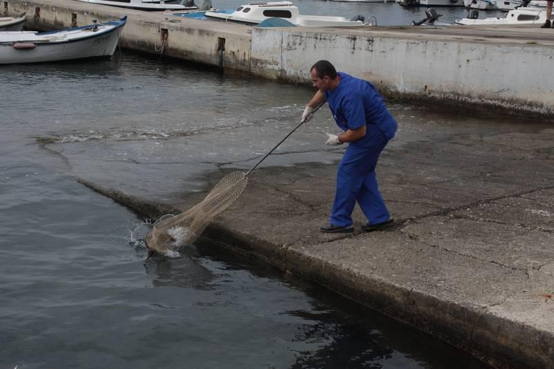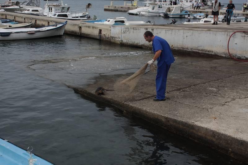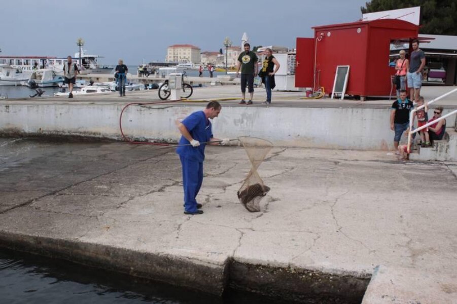 Nešto prije podneva na rivu su stigli veterinarski tehničari koji su je uhvatili mrežom i odvezli na neko prihvatljivije mjesto.
