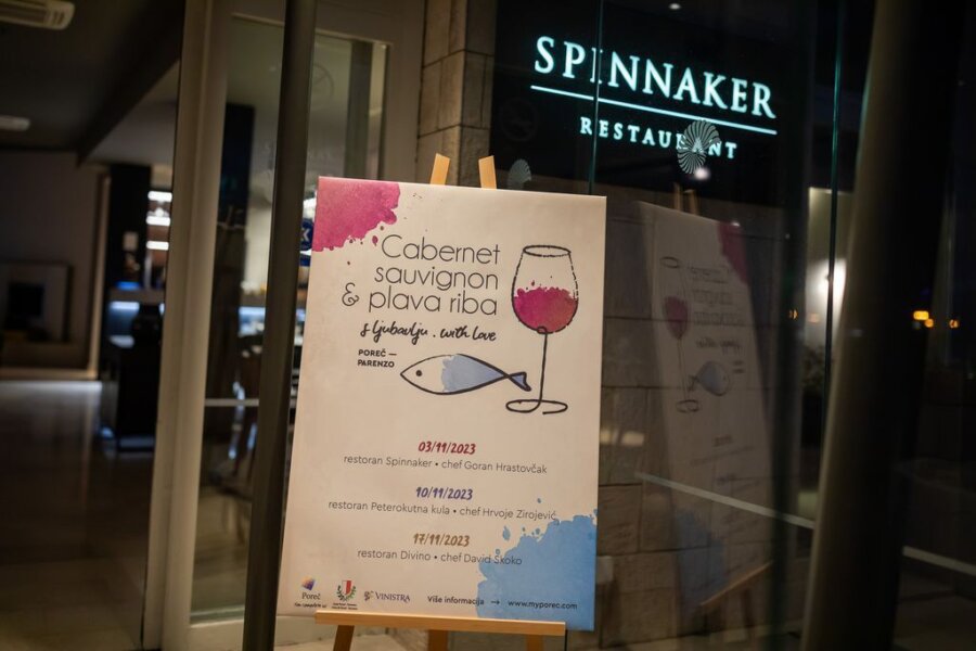 U petak, 3. studenog održan je prvi od tri eno-gastro događanja i to u restoranu Spinnaker uz chefa Gorana Hrastovčaka i sommeliera Emila Perdeca (F&B Manager Plave lagune). Bila je to idealna prilika da se u ugodnoj atmosferi restorana Spinnaker sazna zanimljiva povijest ove vinske sorte koja je zasjala u Istri i njezinu povezanost s plavom ribom. Prisutnima su se pozdravnim govorima obratili sommelier Emil Perdec i direktor Turističke zajednice Grada Poreča, Nenad Velenik toplo zahvalivši svim prisutnima na dolasku naglasivši da je ovo početak jedne nezaboravne priče koja je do sada ostala neispričana, a dijelom je našeg identiteta. Među gostima je bio prisutan i dr.sc. Marijan Bubola iz Instituta za poljoprivredu i turizam iz Poreča koji je ispričao kratku povijest Cabernet Sauvignona i njegovom nastanku prije skoro 500 godina te činjenicu da je danas jedna od najzasađenijih sorti grožđa na svijetu.