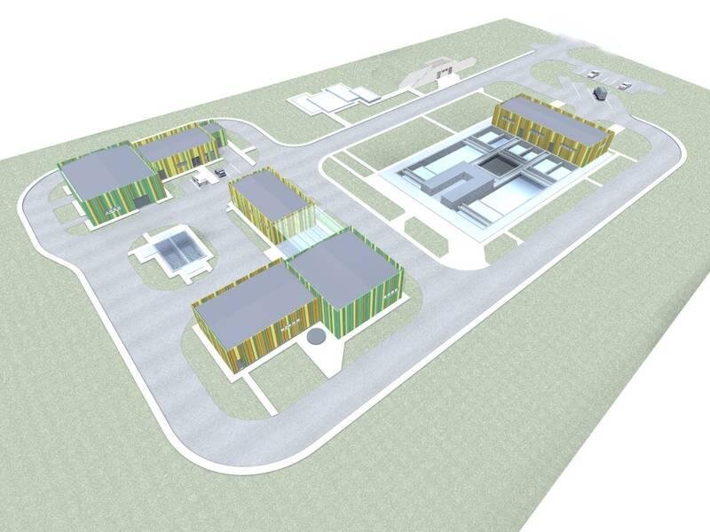 Postupak također uključuje izgradnju svih pomoćnih objekata, kao što su upravno-kontrolne zgrade i pogonski objekti, krajobrazno uređenje lokacija postrojenja, dobavu i izgradnju sve potrebne infrastrukture (voda, struja, telefonija i sl.), izgradnju pristupnih i internih prometnica, radionice za popravke, skladišta, manipulativne prostore i parkirališta, ulazne crpne stanice, objekte ispusta i drugo.