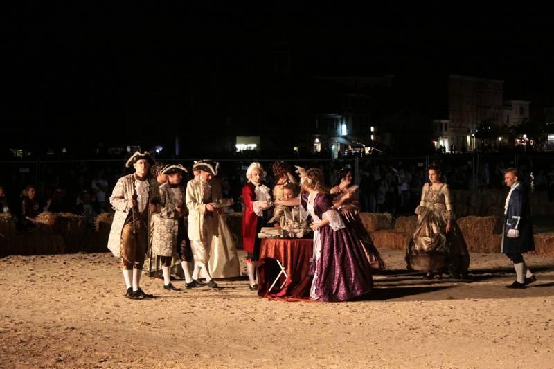 U nedjeljno su predvečerje članovi Društva prijatelja Giostre i Zajednice Talijana Poreč na prostoru Velikoga hrama uprizorili dramsku predstavu „Spilorsi, avocati e sorele“ o zanimljivoj zgodi služavke Mariette (Daliborka Škofić), koja pred vjenčanje ostaje bez prihoda te zbog neisplaćene plaće tuži svog poslodavca Barbariga (Gaetano Benčić). Dosjetljivošću svoje sestre Darije, (Sabrina Bonita-Žužić), zaručnika Fiorina (Elio Štifanić) i branitelja, odvjetnika Bernardina (Giovanni Paoletti), Marietta pred sucima i okupljenom publikom uspijeva dobiti zadovoljštinu primanjem miraza od Barbariga. Predstava se odigrala na inačici mletačkog dijalekta u režiji Gaetana Benčića.