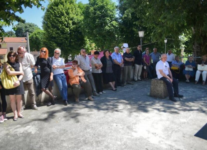 Istarski župan Valter Flego i Ivan Franković, načelnik Općine Pićan otkrivaju bistu Matka Brajše Rašana (Manuel ANGELINI)