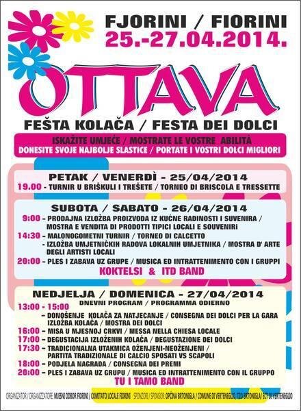 Ovog će se vikenda, od petka 25. do nedjelje 27. travnja 2014. održati pučko zabavna fešta „Ottava“ u Fiorinima, koja se tradicionalno održava vikend nakon Uskrsa.