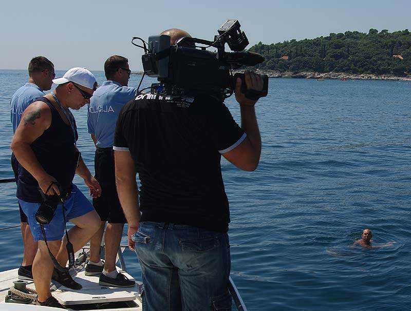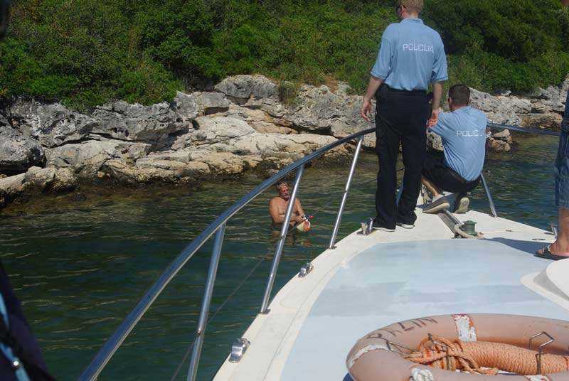 Za jednog "sumnjivog" ronioca na dah ispostavilo se da u vrećici ima samo puževe, a bilo je zanimljivo vidjeti njegovu reakciju kad mu se potiho na nekoliko metara privukla petnaestmetarska grdosija i "pozravila" ga zvučnim signalom.
