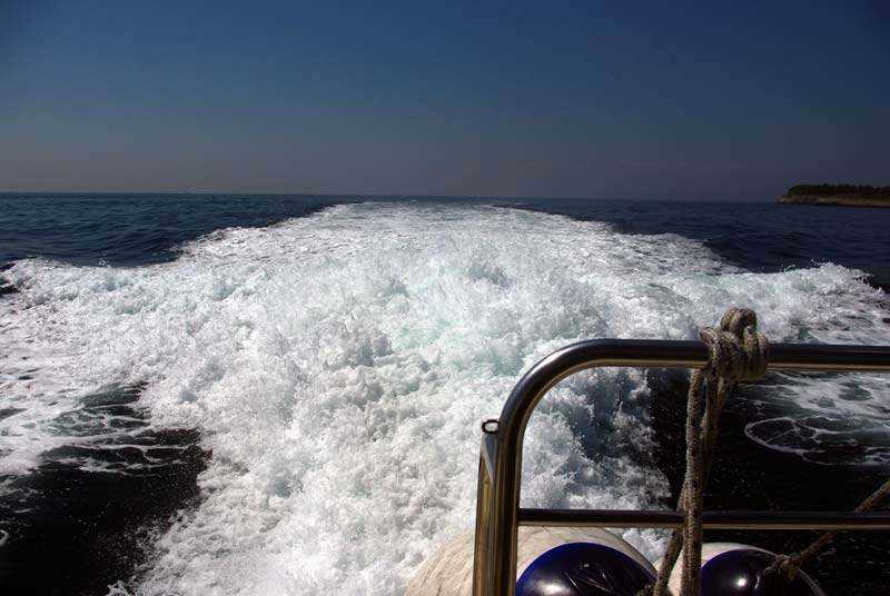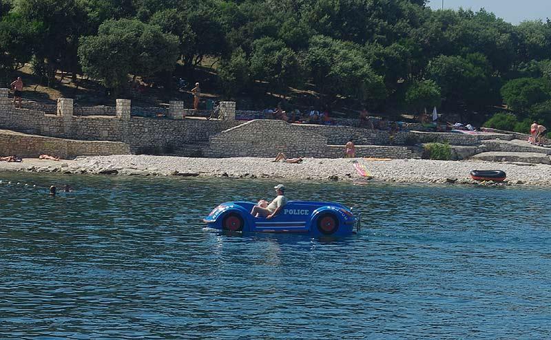 Na naše neizgovoreno pitanje zašto policajci na moru ne nose kape odgovorio je voditelj broda Željko kad je na otvorenom moru malo "pritisnuo gas", a kapa vašeg izvjestitelja veselo preko broda odletjela u more. No, Željko se nije dao smesti, nego je uz veseli smijeh prisutnih okrenuo brod i nepogrešivo se vratio do mjesta gdje je kapa pala u more, odakle ju je Dean iz mora izvukao štapom. Nakon toga je i drugi novinar svoju kapu spremio u ruksak, na sigurno, jer "Pazin" razvija čak 33 čvora brzine, zbog čega su na palubi u opasnosti ne samo kape, nego i naočale i ostali slični, loše pričvršćeni rekviziti.