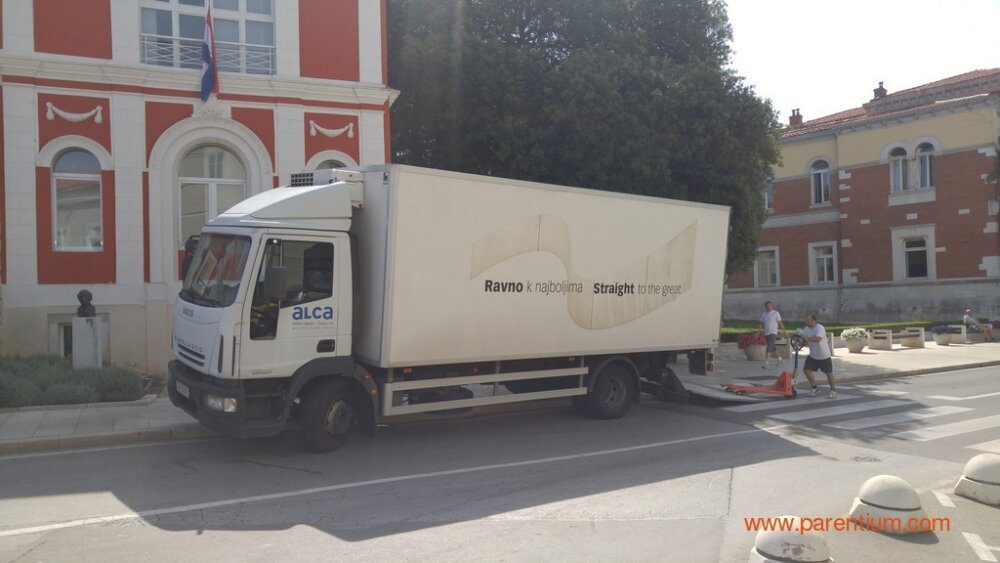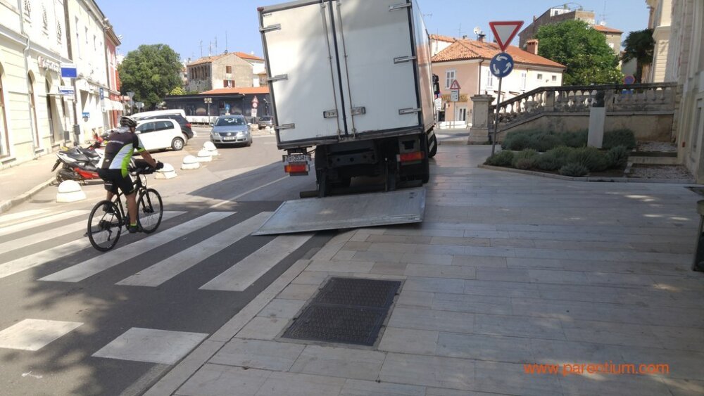 Pred zgradom porečke policijske postaje nekoliko je mjesta rezervirano za motocikle i mopede, ali i ona su počesto zauzeta nekom krntijom na četiri kotača, dok je dostava priča za sebe, poput junaka koji se raširio pred Pučkim otvorenim učilištem, kotačima i metalnom rampom (pre)teškog kamiona mrveći bijeli kamen plaćen iz gradskog proračuna.