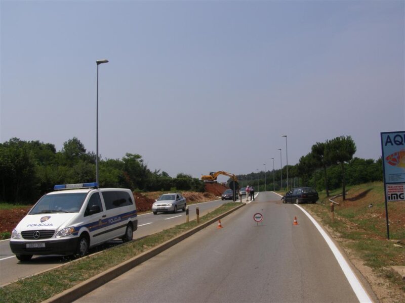 Danas nešto nakon podneva na cesti Poreč došlo je do teže prometne nesreće u kojoj su ozljede zadobili vozač i suvozač u Passatu PU 313GZ. Do nesreće je došlo kad je vozač osobnog automobila, krećući se iz smjera Poreča, neposredno ispred raskrsnice za porečku servisnu zonu izgubio kontrolu nad vozilom i velikom brzinom udario u stup ulične rasvjete.