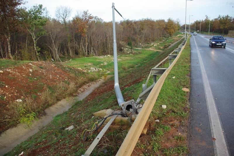 Passatom sletio sa porečke obilaznice srušivši rasvjetni stup