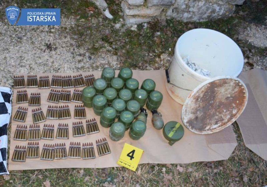 Policijski službenici obavili su i pretragu doma 54-godišnjaka, zajedno s djelatnicima Odjela protueksplozijske zaštite i psom za detekciju eksploziva, s obzirom da je postojala sumnja da muškarac posjeduje eksplozivne tvari i zabranjeno oružje. Prilikom pretrage policijski službenici pronašli su 20 ručnih bombi, upaljač ručne bombe s detonatorom i metalno tijelo ručne bombe s eksplozivnim metkom, MGV 176 strojnicu, spremnik i prigušivač za strojnicu, dvije bajunete, četiri elektronske sklopke s tajmerom, dva okvira za pištolj, čistilicu za pištolj, vježbovni satni upaljač, dvije detonatorske kapisle, dva sporogoreća štapina, zatim oko sedam kilograma raznog eksploziva te 489 komada različitog streljiva.