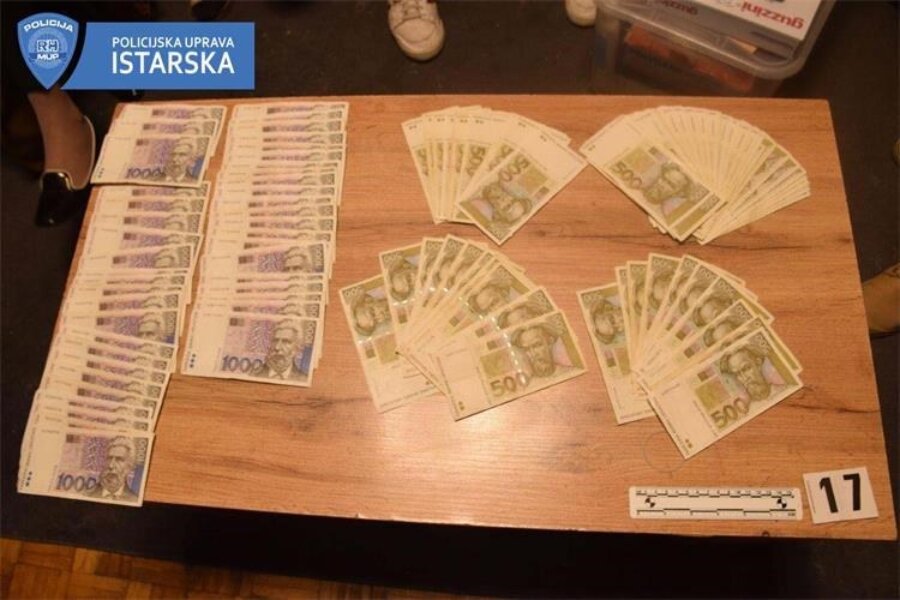 Pretragom je pronađeno više paketića i kutija s ukupno 5.545,4 grama marihuane, 1.097,2 grama amfetamina, 31 gram mješavine duhana i marihuane, 28.5 komada ecstasyja te 10.2 grama kokaina. Osim droge, policijski službenici pronašli su digitalnu vagu i veću količinu novca u kunama i eurima, za koju se pretpostavlja da potječe od preprodaje droge.