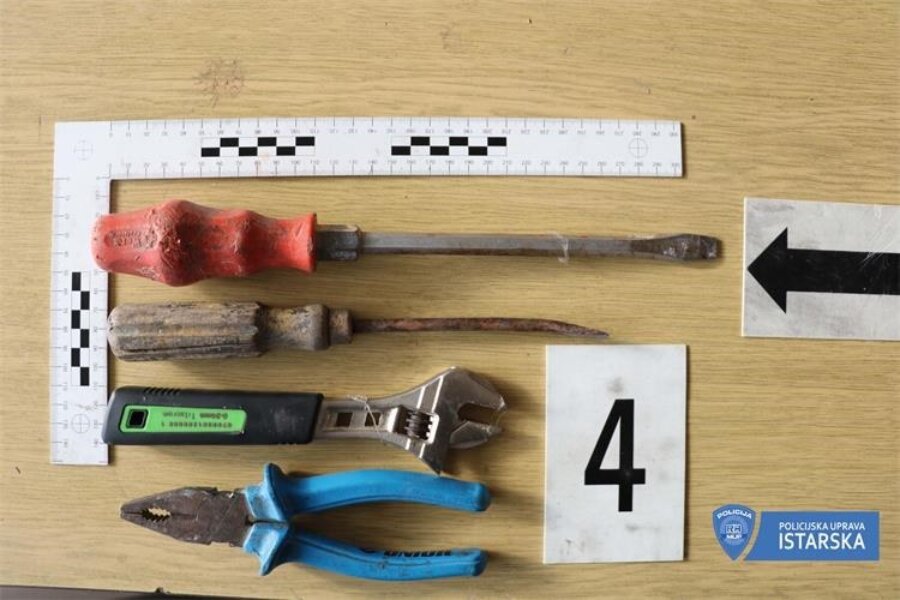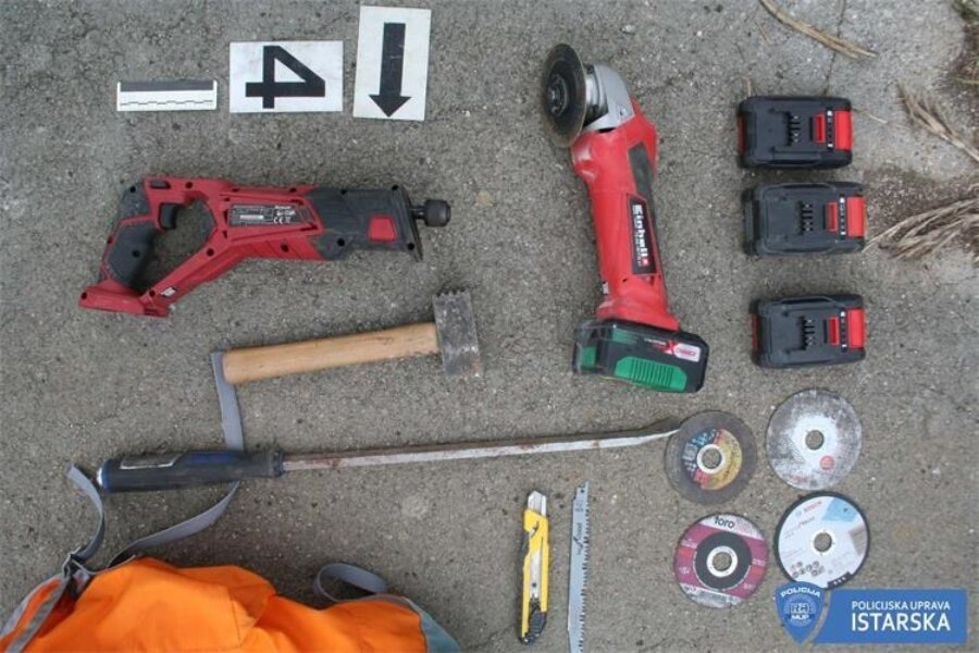 Policija je uhitila dvojicu osumnjičenika u Bujskoj ulici u Umagu nakon što su ih zatekli u krađi laserskog uređaja i produžnog kabla iz skladišta građevinskog alata i opreme na području Monterola. Kako bi se spriječio bijeg i otpor koji su pružali, policajci su uporabili sredstva prisile, prilikom čega su osumnjičeni lakše ozlijeđeni.