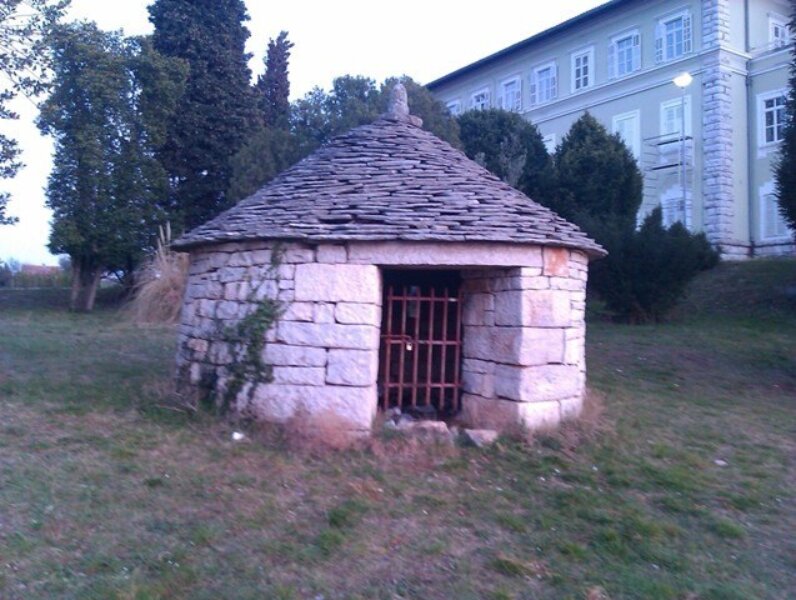 pokazala nam je vrata nekadašnjeg prvog vinskog podruma u Poreču, smještenog u prizemlju. Ulaskom u zgradu primijetili smo da je vrlo stara zbog starih kamenih zidova. Vidjeli smo i ostatak crkvenog poda, odn. mozaika starog oko 1500 godina. Vodičkinja nas je uvela u najljepšu dvoranu u Poreču, poznatu po prelijepom oslikanom stropu. Izložbena dvorana je organizirana u više odvojenih odjeljaka.
