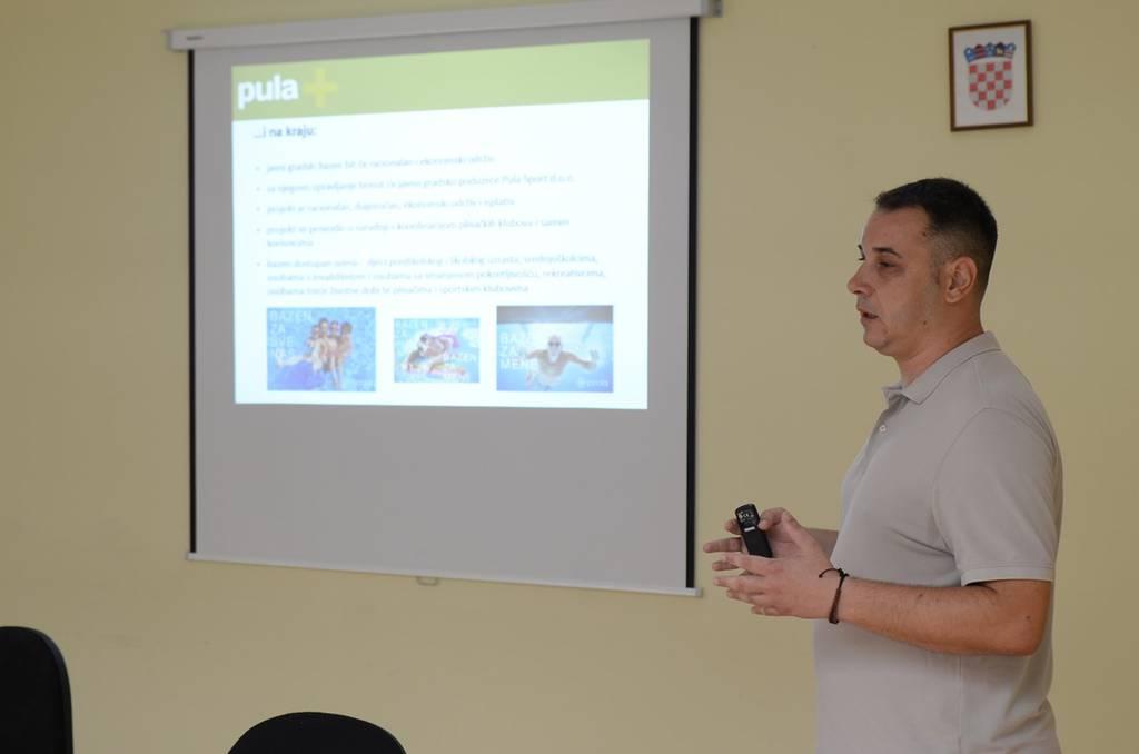 Direktor Pula sporta Ivan Glušac u sklopu prezentacije predstavio je glavne smjernice projekta izgradnje gradskog bazena te je najavio da će radovi, koji su jučer i započeli, trajati do svibnja 2018. godine kada će se cijeli sportski kompleks savršeno uklopiti s novouređenim Trgom kralja Tomislava. (Goran ROJNIĆ, snimio Dejan ŠTIFANIĆ)